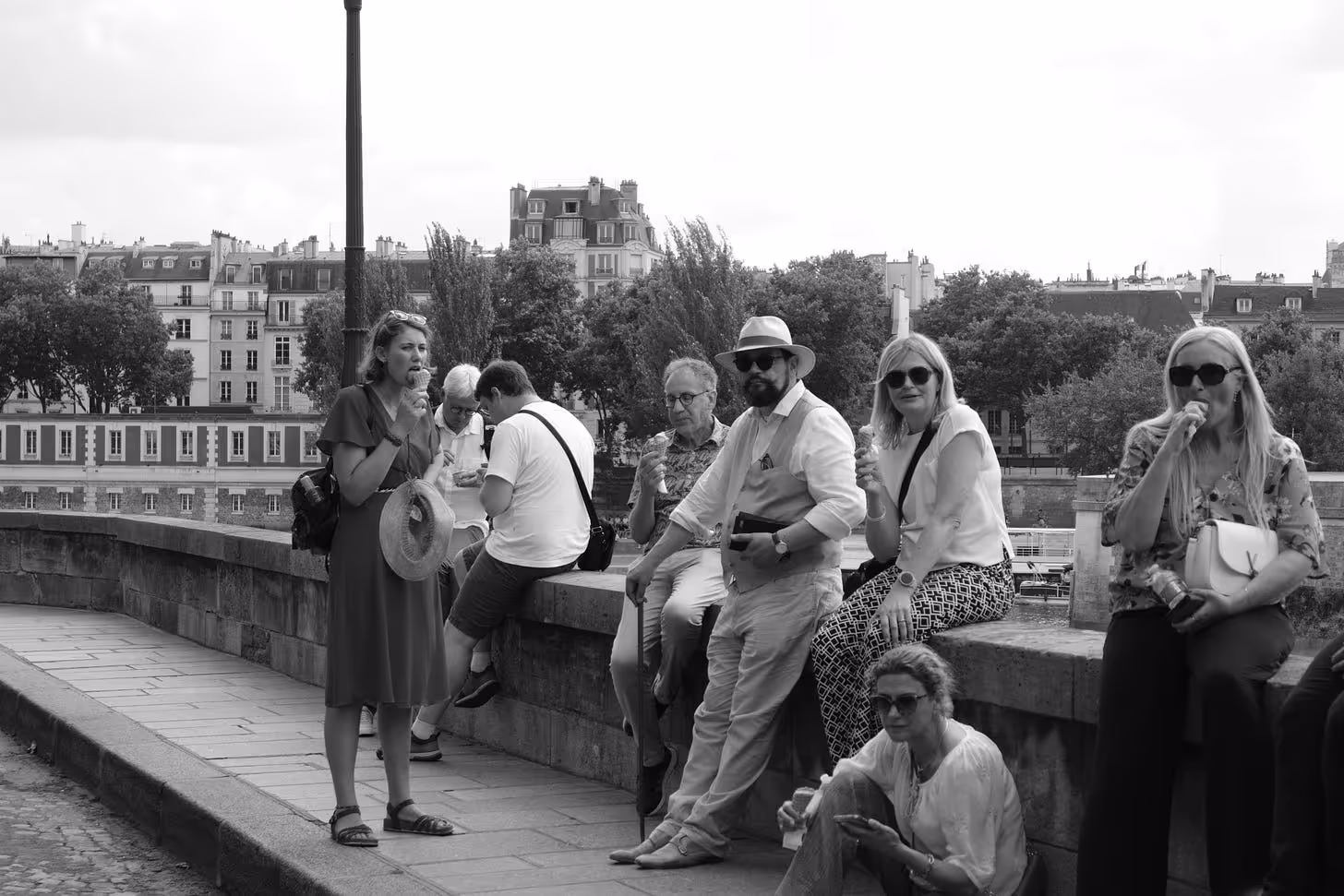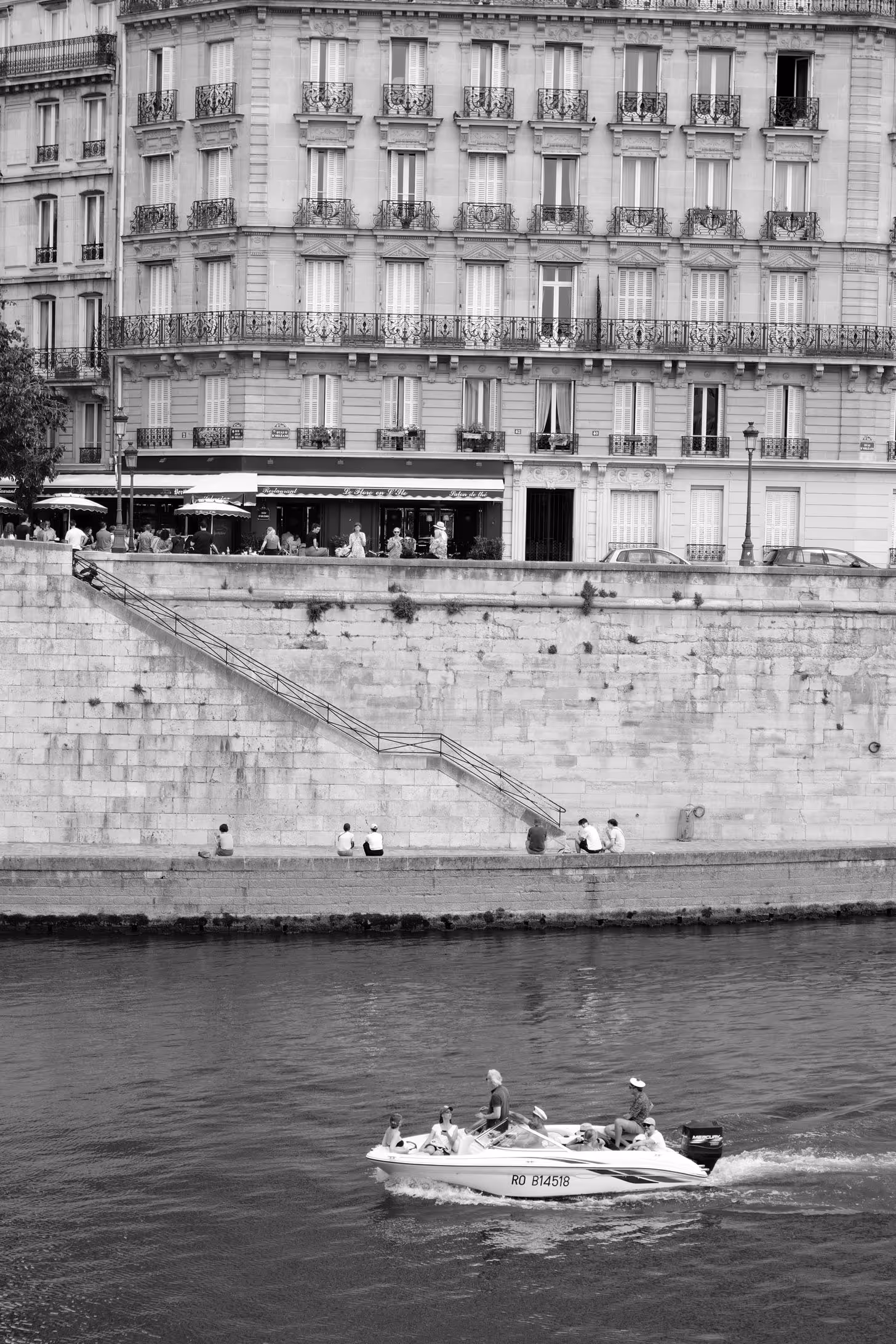 Below, a boat drifted by carrying friends down the river, observed by strangers sipping wine and eating ice cream… Life as mutual theater, it would seem.